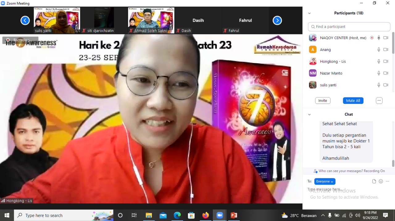 Selama 3 hari sejak tanggal 23-25 September 2022, para peserta yang datang dari berbagai pelosok negeri bahkan dari Hongkong merasakan semangat belajar yang tinggi untuk mendapatkan ilmu The7Awareness langsung dari Penulis dan Master Trainer The7Awareness. Berikut adalah para peserta yang sukses mengikuti pelatihan The7Awareness :